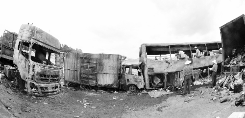 ????7月19日上午8時,車禍現(xiàn)場的大火才被撲滅。