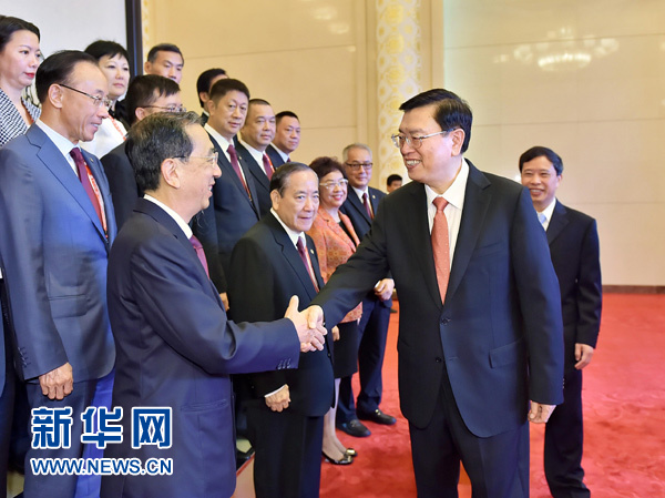 ????這是張德江在北京人民大會(huì)堂會(huì)見以馬有禮會(huì)長為團(tuán)長的澳門中華總商會(huì)訪京團(tuán)全體成員