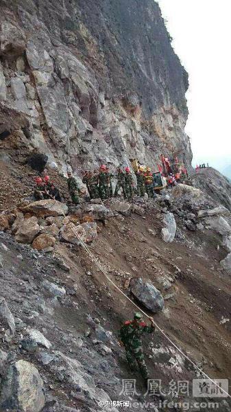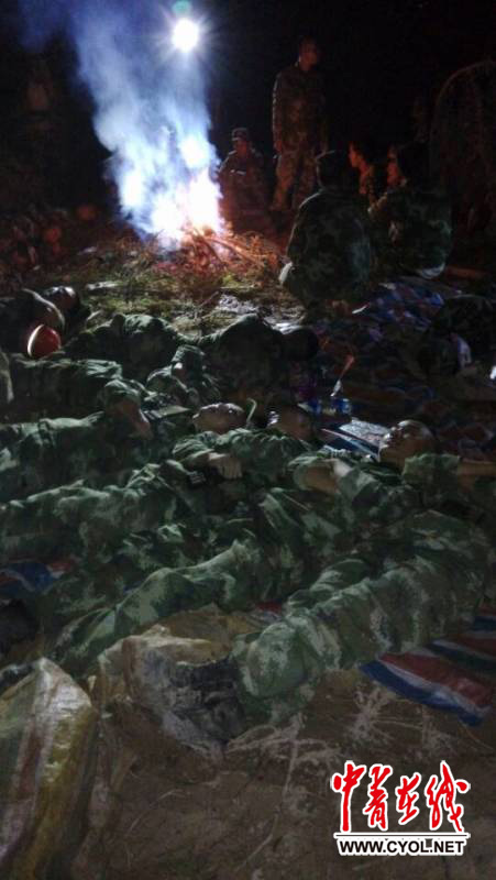 8月5日下午20時左右,正在巧家縣包谷垴鄉(xiāng)參加堰塞湖搶險的武警8750部隊的25名黨員組成的黨員突擊隊,在運送、安放炸藥后返回的路上,道路被山體滑坡阻斷,被困在堰塞湖附近,至今未能脫險,官兵們靠生火取暖。
