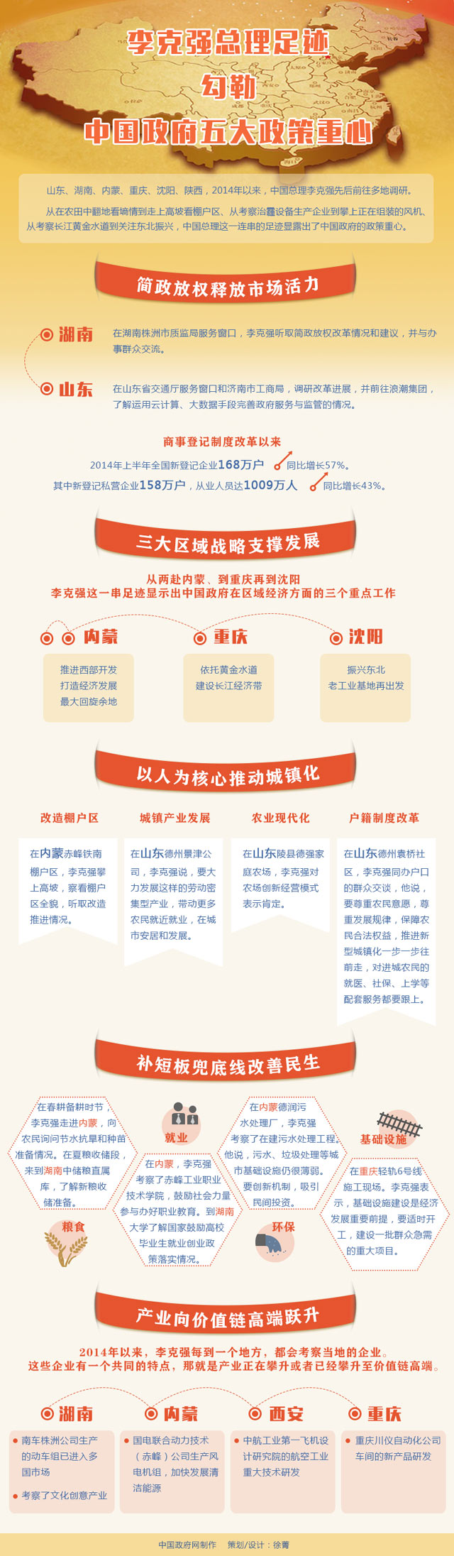 ????山東、湖南、內蒙、重慶、沈陽、陜西,2014年以來,中國總理李克強先后前往多地調研。