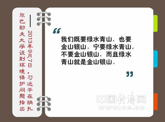 ????——2013年9月7日,習(xí)近平在納扎爾巴耶夫大學(xué)談到環(huán)境保護問題指出 ?