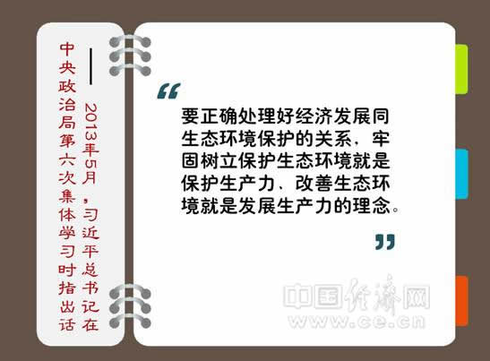 ????要正確處理好經(jīng)濟發(fā)展同生態(tài)環(huán)境保護的關(guān)系,牢固樹立保護生態(tài)環(huán)境就是保護生產(chǎn)力、改善生態(tài)環(huán)境就是發(fā)展生產(chǎn)力的理念?! ?