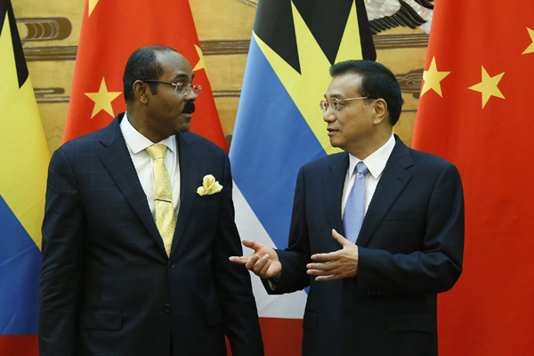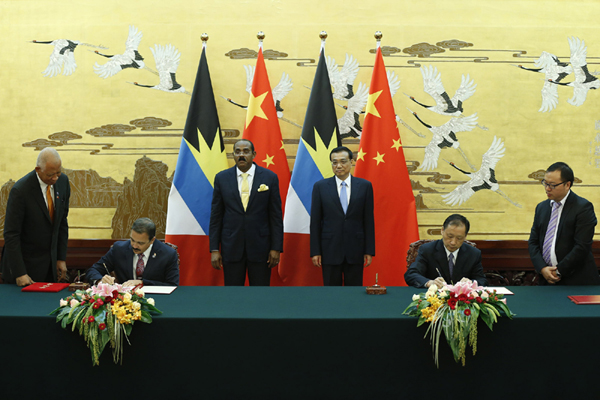 ????【李克強同安提瓜和巴布達總理布朗舉行會談】8月26日下午,國務(wù)院總理李克強在人民大會堂同安提瓜和巴布達總理布朗舉行會談。兩國總理一致同意推動中安友好合作關(guān)系持續(xù)發(fā)展,提升中國與拉丁美洲和加勒比國家合作水平,共同維護廣大發(fā)展中國家利益。?