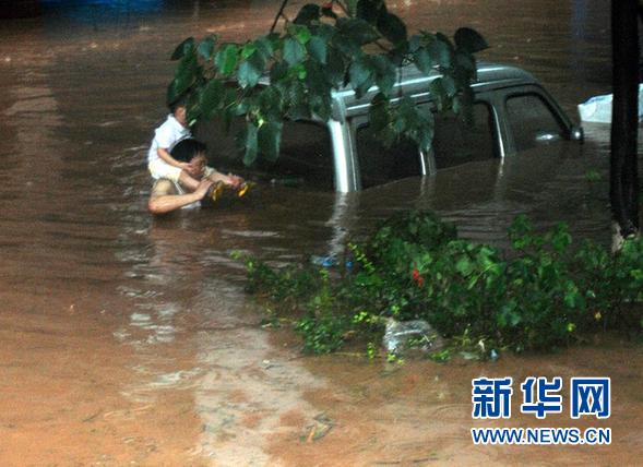 ????9月13日,在四川省廣安市鄰水縣,一名男子在積水中托起一個(gè)孩子。當(dāng)日凌晨開(kāi)始,四川省廣安市境內(nèi)普降暴雨,部分地區(qū)降雨量在200毫米以上,城區(qū)多處路段發(fā)生內(nèi)澇,交通受阻,部分鄉(xiāng)鎮(zhèn)房屋、農(nóng)田被淹。據(jù)廣安市氣象臺(tái)預(yù)計(jì),此次強(qiáng)降雨將持續(xù)至16日,局地累計(jì)雨量可達(dá)350mm左右。目前,抗洪搶險(xiǎn)工作正在緊張進(jìn)行。新華社發(fā)(劉蘇閱 攝)