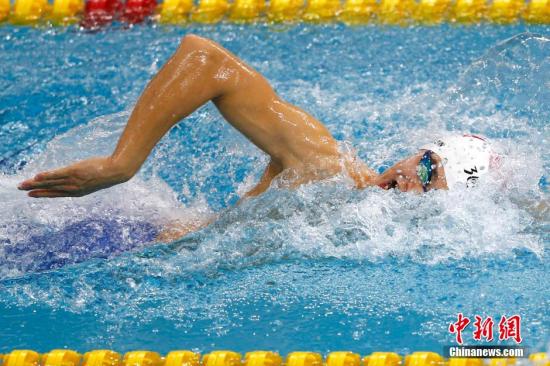 ????資料圖:9月21日上午,仁川亞運(yùn)會(huì)游泳比賽在文鶴樸泰桓游泳館拉開大幕。在男子200米自由游預(yù)賽中,孫楊在第四組登場(chǎng),最終以1分48秒90輕松取得小組第一,成功晉級(jí)。 中新記者 富田 攝??