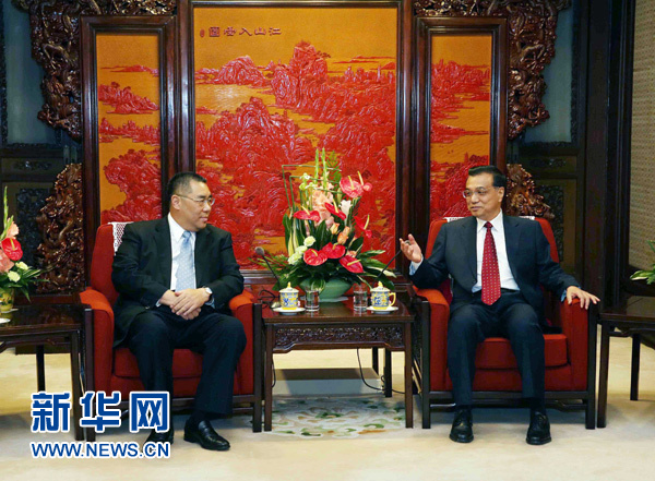 ????9月22日,國(guó)務(wù)院總理李克強(qiáng)在北京中南海紫光閣會(huì)見(jiàn)來(lái)京接受任命的澳門(mén)特別行政區(qū)行政長(zhǎng)官崔世安。 新華社記者劉衛(wèi)兵攝