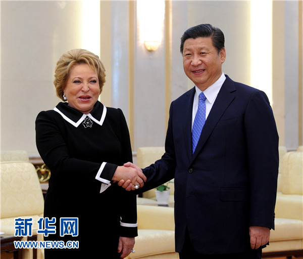 ????習(xí)近平指出,我同普京總統(tǒng)商定,雙方要擴大中俄務(wù)實合作領(lǐng)域,提高務(wù)實合作水平。希望俄羅斯聯(lián)邦委員會繼續(xù)發(fā)揮積極作用,監(jiān)督落實雙方已經(jīng)簽署的合作協(xié)議,為雙方正在商談的合作項目提供法律保障,為兩國企業(yè)合作和人員往來創(chuàng)造更加便利的條件。請你回國后轉(zhuǎn)達(dá)我對普京總統(tǒng)的誠摯問候和良好祝愿。我期待著他11月來華出席亞太經(jīng)合組織領(lǐng)導(dǎo)人非正式會議。