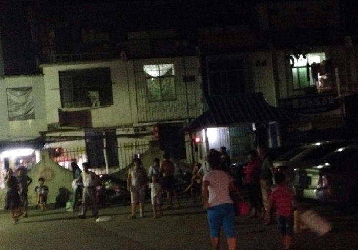 ??? 10月7日,云南省臨滄市臨翔區(qū)有震感,市民來(lái)到街頭(手機(jī)拍攝)。據(jù)中國(guó)地震臺(tái)網(wǎng)中心網(wǎng)站最新消息,云南省普洱市景谷傣族彝族自治縣,北京時(shí)間10月7日21時(shí)49分,發(fā)生 6.6級(jí)地震,震中位于北緯23.4度、東經(jīng)100.5度,震源深度5.0公里。昆明等地震感強(qiáng)烈,昆明市民明顯感覺(jué)到震感,一些燈搖晃。新華社發(fā)