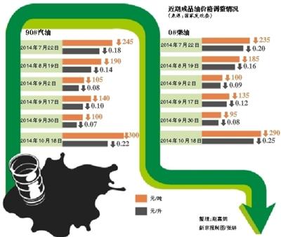 ????國(guó)內(nèi)油價(jià)也隨國(guó)際油價(jià)連連下調(diào),如果本周下調(diào)實(shí)現(xiàn),今年成品油零售限價(jià)即經(jīng)歷4次上漲,11次下跌和6次落空。去年3月油價(jià)新定價(jià)機(jī)制實(shí)行以來(lái),成品油將統(tǒng)共下調(diào)17次,下調(diào)頻率超過(guò)上調(diào)頻率6次,且下調(diào)幅度遠(yuǎn)超上調(diào)幅度近千元。