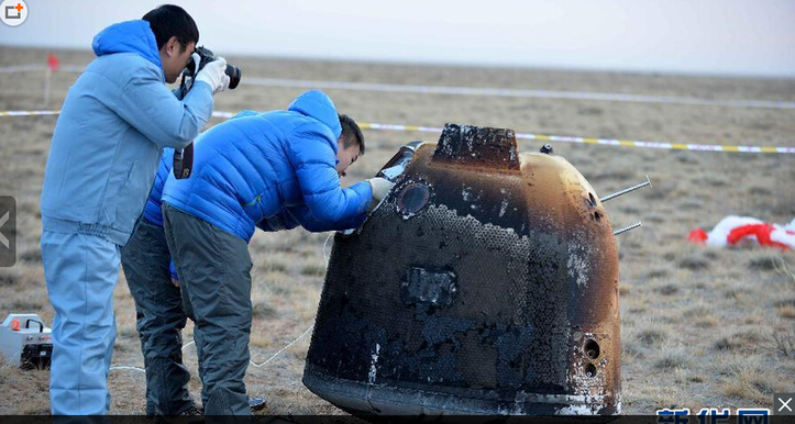 ????新華網(wǎng)快訊:記者在北京航天飛行控制中心大屏幕上看到,經(jīng)過漫長而充滿艱險的返回征程,我國探月工程三期再入返回飛行試驗(yàn)器的返回器成功在著陸區(qū)預(yù)定區(qū)域降落。