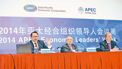 11月7日,太平洋經(jīng)濟(jì)合作理事會在北京國家會議中心發(fā)布《區(qū)域國家2014—2015年度報告》。本報記者雷聲攝