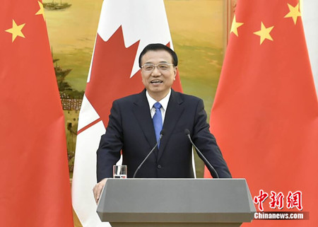 ????中新網(wǎng)北京11月8日電(記者 郭金超) 11月8日是記者節(jié),但有不少記者仍在工作,中國和加拿大總理下午的正式活動就吸引了眾多中外記者。共見記者會一開始,李克強總理就祝在場所有記者節(jié)日快樂。記者們對總理的祝福報以熱烈掌聲。他特意告訴外國記者,雖然這是中國的記者節(jié),但你們是同行,也祝你們節(jié)日快樂。