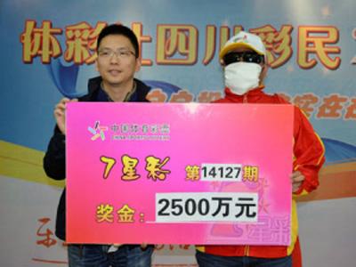 10月31日晚,體彩7星彩玩法第14127 期開獎號碼為“1972416”。全國共開出16注500萬,7注為四川彩民所得,其中5注被南充彩民劉先生獨得,總獎金達2500萬元。