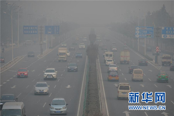 11月19日,機(jī)動(dòng)車(chē)在河北省石家莊市東二環(huán)主干道上行駛。新華社記者 朱旭東 攝