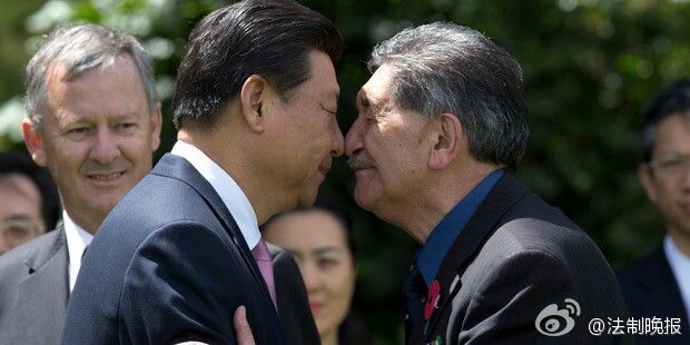 @法制晚報(bào):【習(xí)大大接受毛利碰鼻禮】據(jù)新西蘭天維網(wǎng)報(bào)道,正在大洋洲訪問(wèn)的國(guó)家主席習(xí)近平和夫人彭麗媛抵達(dá)新西蘭惠靈頓,當(dāng)?shù)貢r(shí)間午后,習(xí)大大在惠靈頓政府大樓前接受毛利人的碰鼻禮。(記者 李志豪)