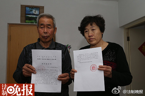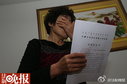 法制晚報(bào)訊(記者馮明文 吳海浪) 今天上午8點(diǎn)30分,為兒子呼格吉勒圖奔走9年的李三仁、尚愛云夫婦,終于迎來了盼望已久的內(nèi)蒙古自治區(qū)高級人民法院的再審決定書。這份再審決定書,由內(nèi)蒙古高級人民法院立案一廳廳長暴巴圖帶領(lǐng)法院相關(guān)工作人員送達(dá)到他們的手中。