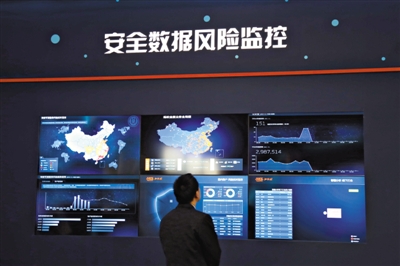 昨日,首屆國家網(wǎng)絡安全宣傳周公眾體驗展在北京中華世紀壇舉行,圖為觀眾正在了解安全數(shù)據(jù)風險監(jiān)控系統(tǒng)。中新社發(fā)
