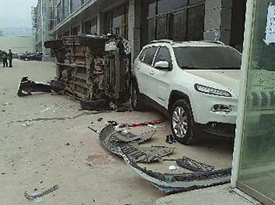 在事故現(xiàn)場,被撞越野車所屬的4S店的工作人員正在檢查受損的車輛。一名工作人員介紹,唐某共撞壞3輛還未銷售的進口越野車,每輛售價都在數(shù)十萬元。