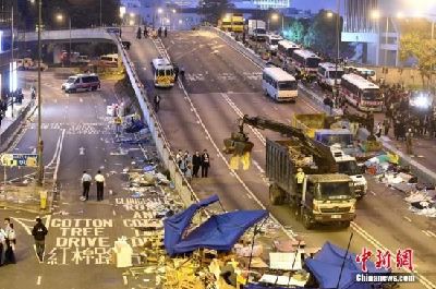 香港警方11日基本完成對中環(huán)、金鐘地區(qū)“占領(lǐng)區(qū)”全面清障后,違法“占領(lǐng)中環(huán)運(yùn)動”持續(xù)兩個多月后進(jìn)入尾聲。,香港社會秩序漸回正軌。從中央政府到香港各界,多方繼續(xù)推進(jìn)落實(shí)香港政改和特首普選。
