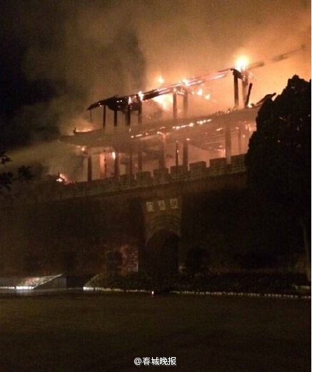 ????據(jù)春城晚報(bào)認(rèn)證微博1月3日報(bào)道,當(dāng)日2點(diǎn)50左右 ,巍山縣拱辰樓被大火燒毀,目前起火原因尚未查明。 據(jù)悉,巍山古城拱辰樓原為蒙化衛(wèi)城的北門城樓,始建于明洪武二十三年,拱辰樓建在長47.1米,寬26.6米,高8.1米的磚砌城墻上,樓下為城門洞。圖片來源:春城晚報(bào)認(rèn)證微博