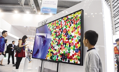 ????京東方公司在第十六屆高交會(huì)展出的8K電視。新華社記者 毛思倩攝