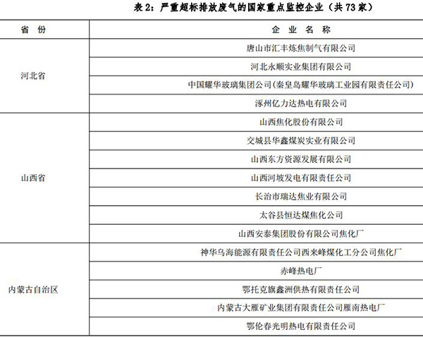 ????嚴(yán)重超標(biāo)排放的75家國控企業(yè)中,河南平煤集團(tuán)開封市興化精細(xì)化工廠、湖北襄樊新四五印染有限責(zé)任公司兩家公司屬廢水嚴(yán)重超標(biāo),其余73家全部是廢氣嚴(yán)重超標(biāo)企業(yè)。這些企業(yè)中,不乏中石油、華電、中石化等央企下屬企業(yè)。