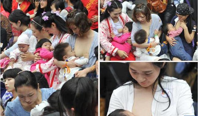 ????5月21日,福建福州,百余名母乳媽媽齊聚福州三坊七巷南后街,在“5.20全國母乳喂養(yǎng)宣傳日”之際,舉行主題為“勇敢喂愛 為愛勇敢”的“哺乳快閃”活動,孩子們安靜地在媽媽懷里吃奶。