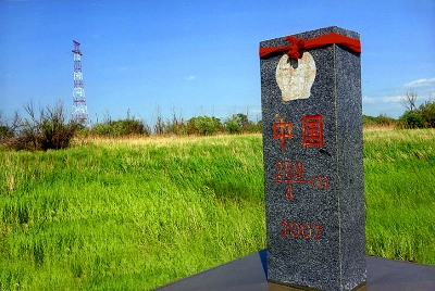 ????標(biāo)志中俄重新劃界的新界碑已經(jīng)樹立在黑瞎子島上。