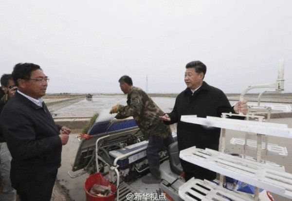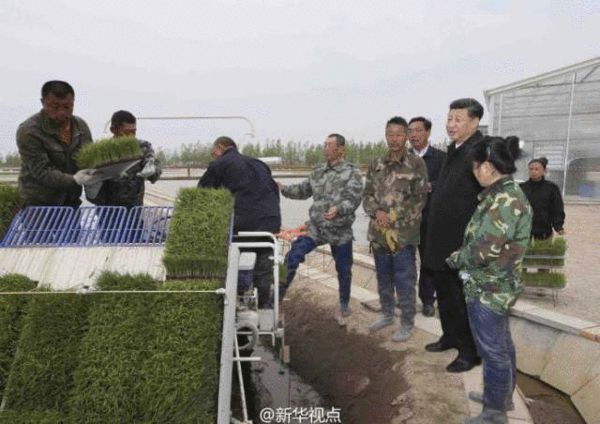 ????【習(xí)近平:保障糧食安全功不可沒】24日上午,習(xí)近平來到黑龍江省撫遠(yuǎn)市玖成水稻種植專業(yè)合作社,了解合作社土地流轉(zhuǎn)和采用先進(jìn)種植技術(shù)提高水稻產(chǎn)量效益等情況??倳浀巧弦慌_自動插秧機(jī),手扶方向盤,察看儀表盤,詢問技術(shù)人員機(jī)械的工作原理、購買價格、插秧效率等。在快速育秧車間,農(nóng)技人員介紹利用快速育秧設(shè)備進(jìn)行超早育秧,提升稻米品質(zhì)情況。總書記問:“這里種植什么品種?”“快速育苗產(chǎn)量能提高多少?”總書記問幾位農(nóng)民,合作社是什么時候成立的,土地流轉(zhuǎn)后收入怎么樣,還有什么打算。習(xí)近平說,黑龍江作為農(nóng)業(yè)大省,保障國家糧食安全功不可沒。在此基礎(chǔ)上,要注重經(jīng)濟(jì)多元化發(fā)展,讓農(nóng)民生活水平不斷提高。