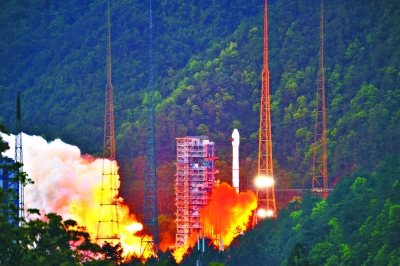 ▲4月12日19時04分,我國實踐十三號衛(wèi)星在西昌衛(wèi)星發(fā)射中心由長征三號乙運載火箭成功發(fā)射。新華社發(fā)(葉樂峰 攝)