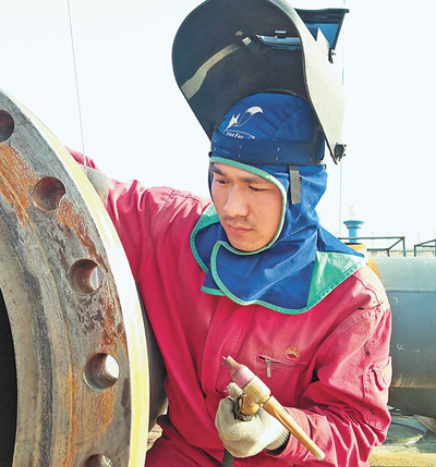 2007年,王要飛參加印度東氣西輸管道工程,現(xiàn)場(chǎng)氣溫高達(dá)四五十?dāng)z氏度,上千攝氏度的焊花連牛皮圍裙都能燒漏,濺到身上鉆心地疼;2009年,澀寧蘭工程在青海段施工,零下二三十?dāng)z氏度的低溫,一道焊口得爬冰臥雪半小時(shí)以上,一天下來(lái)至少10小時(shí)。這樣的艱苦環(huán)境下,王要飛硬是咬牙堅(jiān)持了兩個(gè)月。