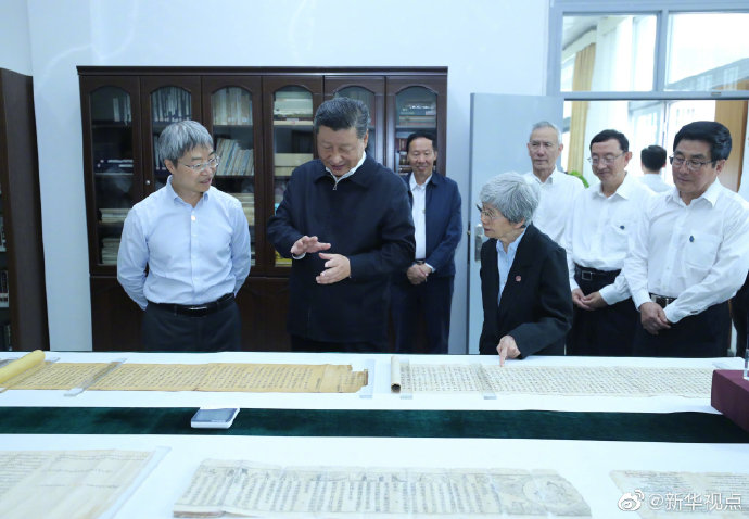 【習(xí)近平在敦煌研究院同專(zhuān)家學(xué)者座談】習(xí)近平總書(shū)記19日下午來(lái)到敦煌研究院,察看珍藏文物和學(xué)術(shù)成果展示,并同有關(guān)專(zhuān)家、學(xué)者和文化單位代表座談。(文字:張曉松、朱基釵 攝影:鞠鵬、謝環(huán)馳)