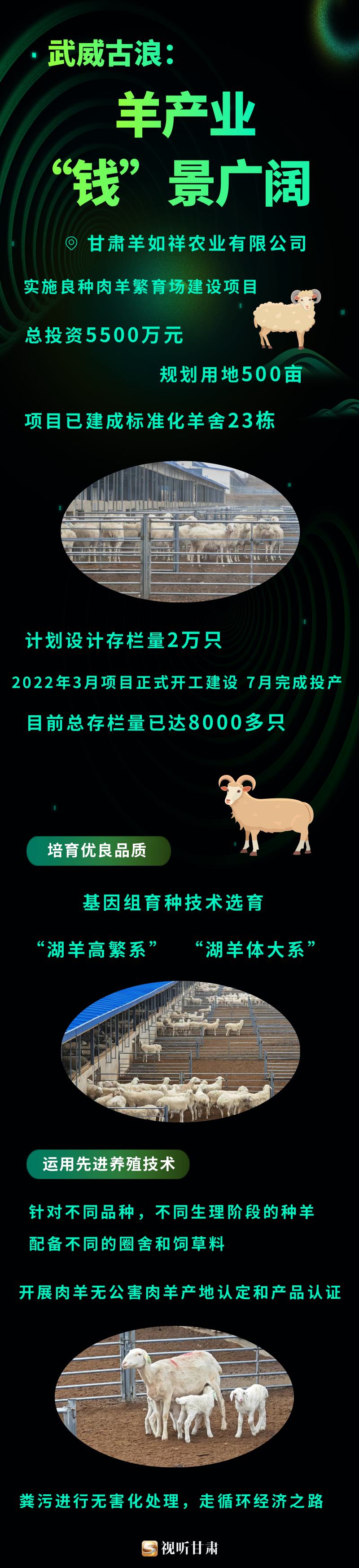 近年來,武威古浪縣按照“建基地、強(qiáng)龍頭、延鏈條、聚集群”的產(chǎn)業(yè)發(fā)展方向,大力發(fā)展羊產(chǎn)業(yè),形成了“企業(yè)+基地+農(nóng)戶”的發(fā)展模式。作為古浪縣重點(diǎn)招商引資項(xiàng)目,甘肅羊如祥農(nóng)業(yè)有限公司良種肉羊繁育場以良種繁育為切口,為壯大羊產(chǎn)業(yè)規(guī)模、牢固羊產(chǎn)業(yè)基礎(chǔ)增添動(dòng)力。