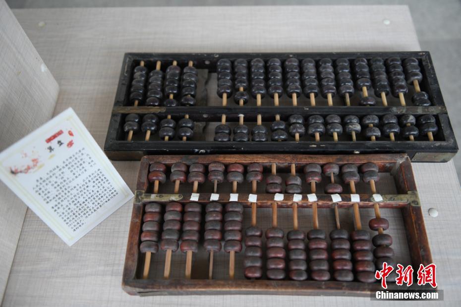 圖為鄉(xiāng)村農(nóng)耕博物館里展示的算盤。