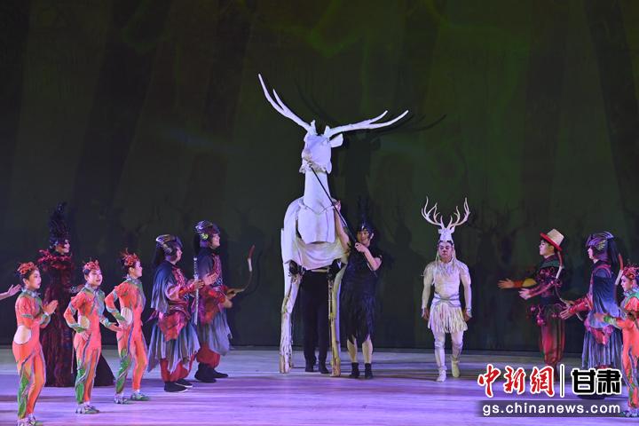 近日,在甘肅黃河劇院上演的大型幻境式雜技兒童劇《九色鹿》。