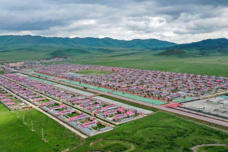 盛夏,甘南草原碧綠無垠,藍(lán)天白云下,一排排紅瓦白墻的現(xiàn)代化藏式民居沿著國道213線兩側(cè)鋪展開來,牧民臉上掛著的喜悅笑容像格?;ㄒ粯訝N爛。