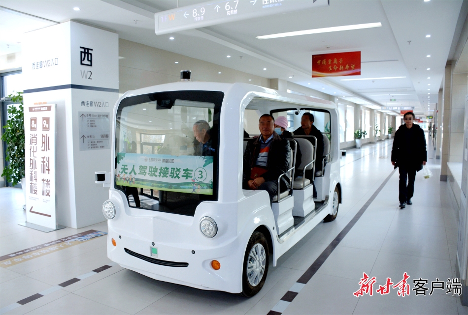 行駛中的5G無人駕駛接駁車。新甘肅·甘肅日報記者 金奉乾攝