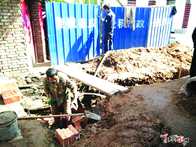 ????在道南另外一條平房區(qū)巷道三角地,記者同樣看到工人們正在開挖路面進行地下排污管道的鋪設工作。三角地和新一院的情況類似,過去也沒有地下排污管,加上是平房區(qū)環(huán)境衛(wèi)生很差,本次改造第一步也是先將排污暗渠改為管道。
