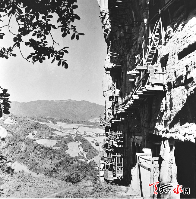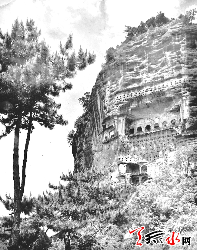 ????我去麥積山是在1957年,在那里度過了春末夏初的日子。那時(shí)由天水城里通往麥積山的簡(jiǎn)易公路剛修通不久,平時(shí)沒有車輛通行。由于當(dāng)?shù)匚幕块T的協(xié)助,麥積山文管所幾乎動(dòng)用全部力量迎接我們上山,所謂“全部力量”者,就是所長(zhǎng)本人和他的那匹馬。