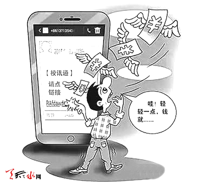 ????民警說,從以往詐騙案件的發(fā)案情況來看,不法分子發(fā)來的短信,都是針對個(gè)人的關(guān)切點(diǎn),騙子會(huì)在短信文案上下足功夫,千方百計(jì)誘使手機(jī)用戶點(diǎn)擊鏈接。比如:“同學(xué)聚會(huì)的相片在這個(gè)網(wǎng)址里”,“這是你老公與別人偷情的照片”等等。犯罪分子利用家長關(guān)注孩子在校表現(xiàn)及成績的特點(diǎn),將詐騙目標(biāo)換成了家長,也就出現(xiàn)了“校訊通”詐騙。