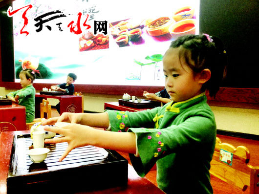 除了讓孩子們了解中國(guó)傳統(tǒng)文化之外,該館又為孩子們準(zhǔn)備了一場(chǎng)視覺(jué)上的饕餮盛宴,首先登場(chǎng)的是瀚博幼兒園的小朋友,他們?yōu)槲覀儙?lái)的表演是集體茶藝秀。在舒緩優(yōu)美的音樂(lè)聲中,我們觀看著小朋友一招一式的優(yōu)雅動(dòng)作,讓觀者充分領(lǐng)略了中國(guó)茶文化的藝術(shù)魅力。他們年齡雖小,卻把中國(guó)的茶文化展現(xiàn)得淋漓盡致,讓大家不禁稱(chēng)贊。
