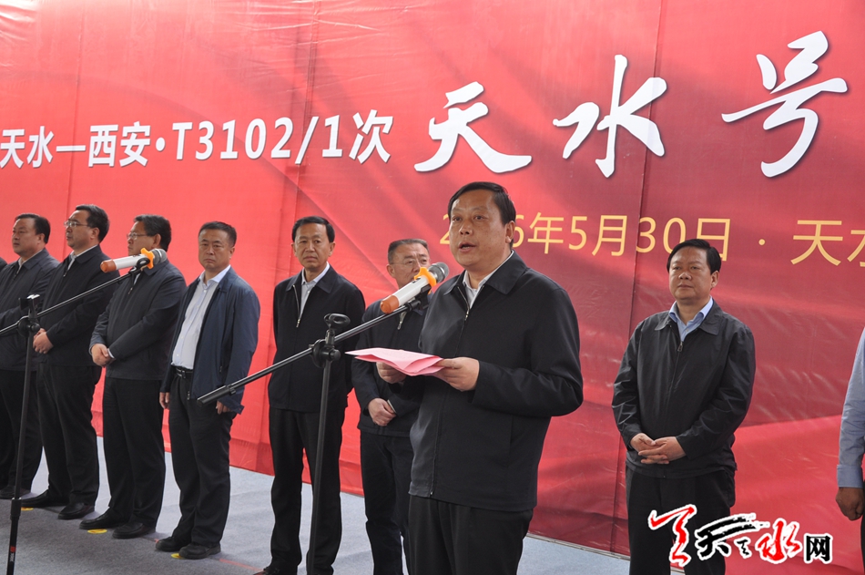 市委書記王銳出席列車首發(fā)儀式,并宣布“天水號”發(fā)車。