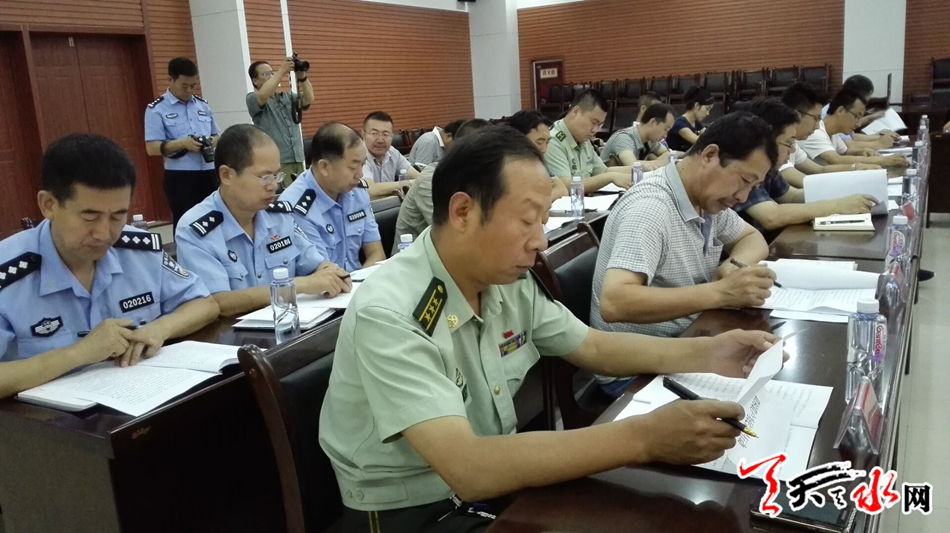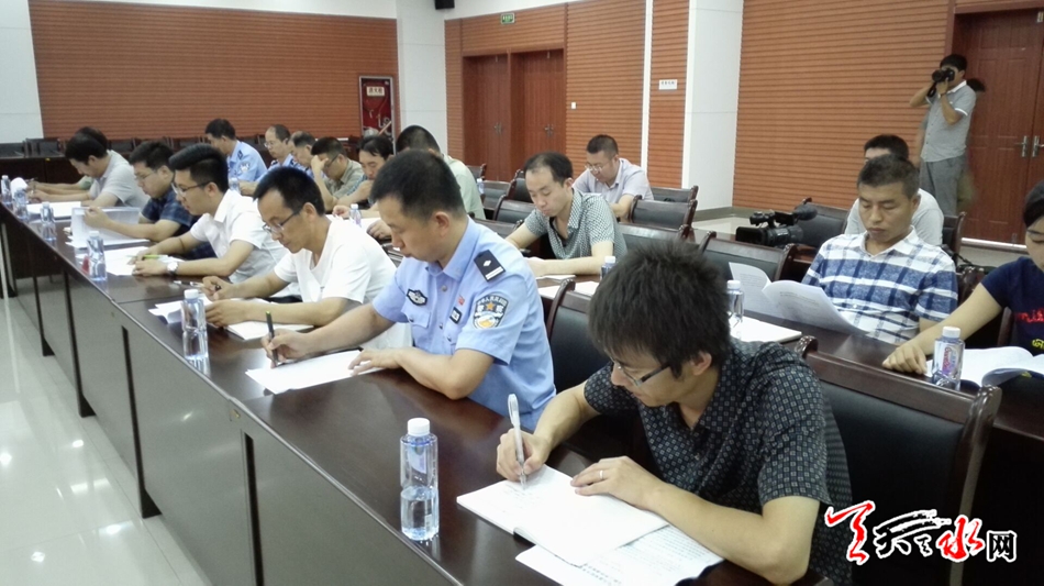 天天天水網(wǎng)20日11時(shí)訊【記者李旺旺?李欣桐】7月20日上午,?2016年市直單位聯(lián)系張家川縣雙聯(lián)工作協(xié)調(diào)推進(jìn)會在市公安局召開。市委常委、副市長張明泰,市政協(xié)副主席馬百齡,市公安局黨委書記、局長黃金奎出席會議。