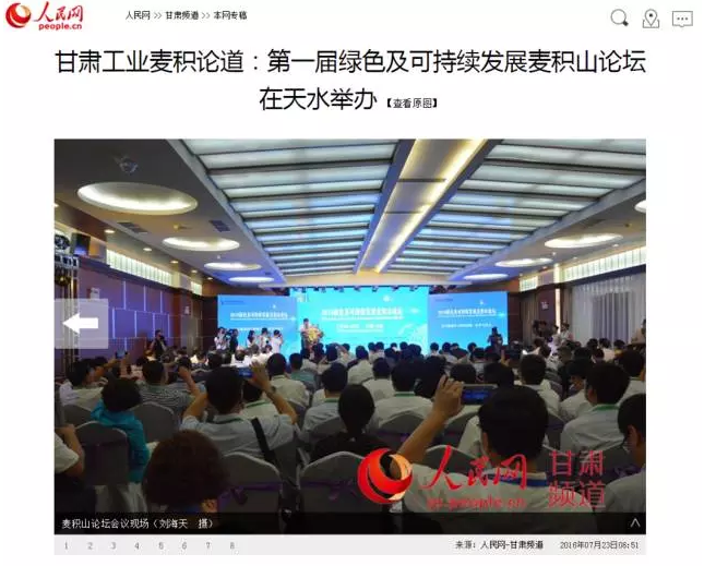 《人民網(wǎng)》甘肅工業(yè)麥積論道:第一屆綠色及可持續(xù)發(fā)展麥積山論壇在天水舉辦