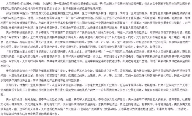 《每日甘肅網(wǎng)》:“麥積山論壇”落地天水 “專家智庫”助推我省綠色可持續(xù)發(fā)展