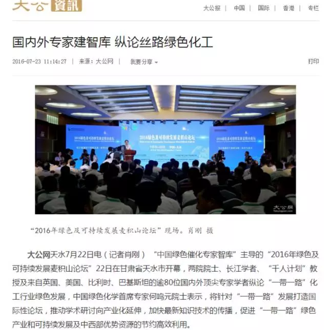 《大公網(wǎng)》:國內外專家建智庫 縱論絲路綠色化工