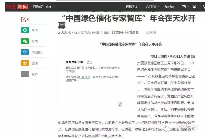 《網(wǎng)易》:“中國綠色催化專家智庫”年會在天水開幕