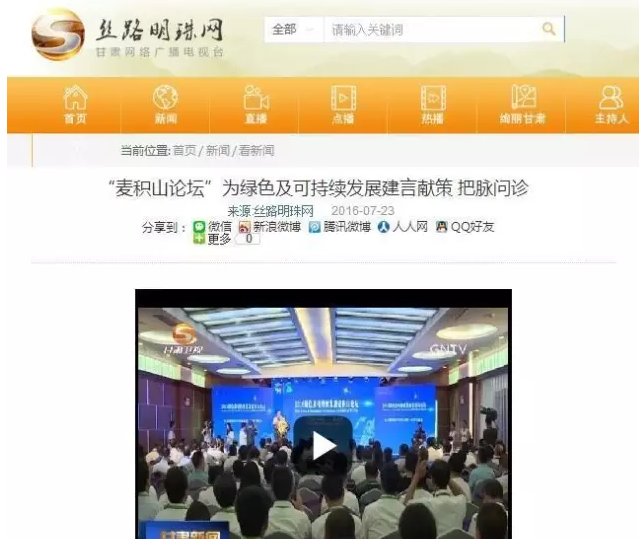 《甘肅衛(wèi)視》:“麥積山論壇”為綠色及可持續(xù)發(fā)展建言獻策 把脈問診