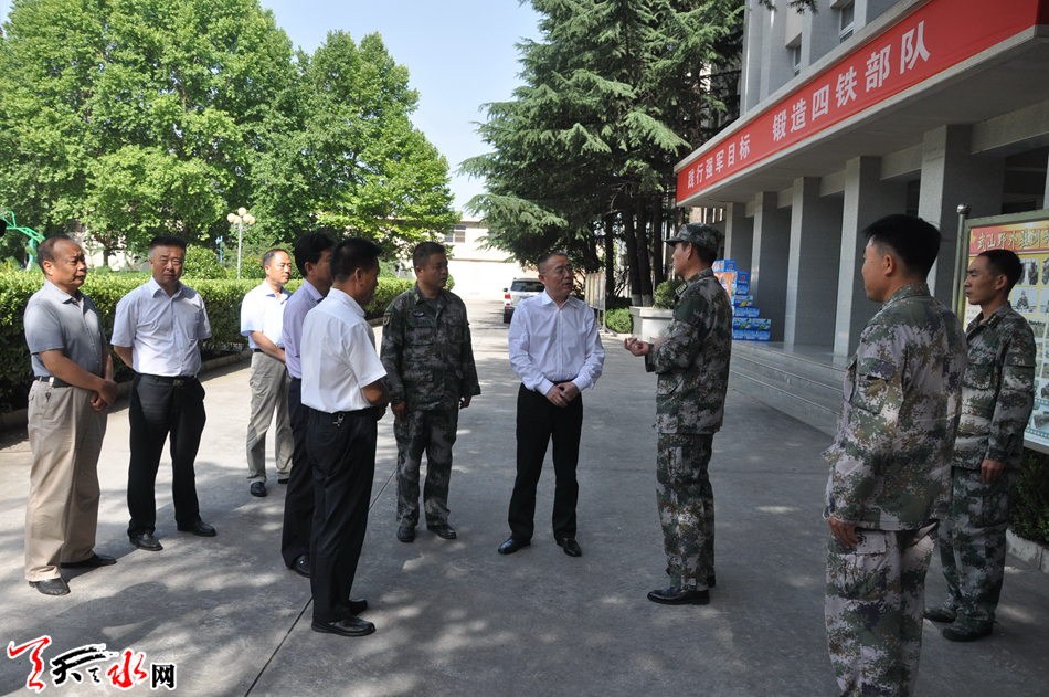 ????天天天水網(wǎng)訊【記者馮麗娟】在“八一”建軍節(jié)來臨之際,7月27日上午,市委書記王銳帶領(lǐng)市四大組織領(lǐng)導(dǎo)走訪慰問了駐市部隊官兵,為他們送去慰問品,向他們致以節(jié)日的祝賀和親切的慰問。