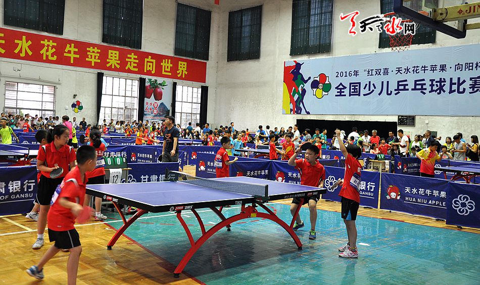 全國少兒乒乓球比賽激烈角逐現(xiàn)場圖: